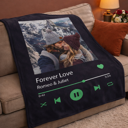 Kişiye Özel Şarkı Tasarımlı Fotoğraflı Battaniye – Anılarınızı ve Şarkınızı Ölümsüzleştirin