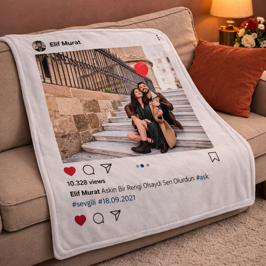 Instagram Tasarımlı Kişiye Özel Fotoğraflı Battaniye – Unutulmaz Anılarınızı Sarın
