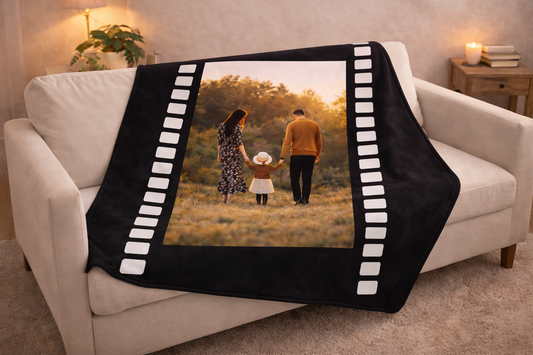 Kişiye Özel Film Şeridi Tasarımlı Fotoğraflı Battaniye – Anılarınızı Sahneye Taşıyın